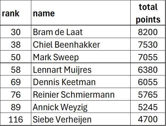 Overview of all Dutch WPC/WSC results. Report by Hns Eendebak.